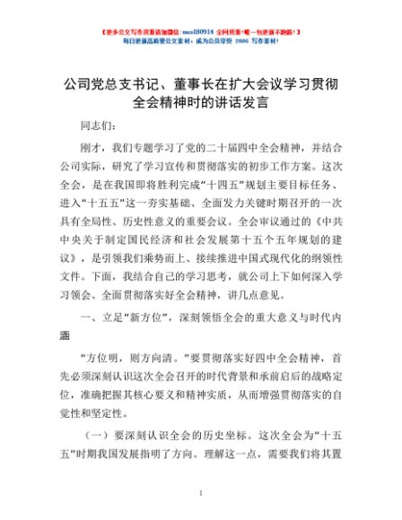 / 公司党总支书记、董事长在扩大会议学习贯彻全会精神时的讲话发言