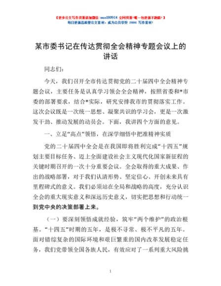 / 某市委书记在传达贯彻全会精神专题会议上的讲话