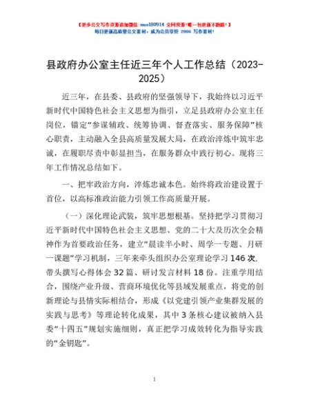 / 县政府办公室主任近三年个人工作总结(2023-2025)
