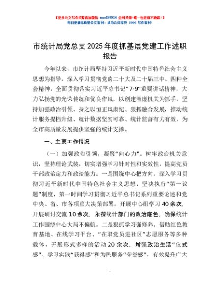 / 市统计局党总支2025年度抓基层党建工作述职报告