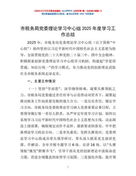 / 市税务局党委理论学习中心组2025年度学习工作总结