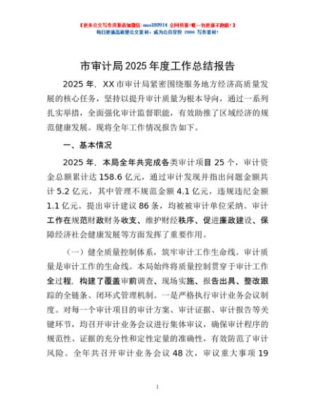 / 市审计局2025年度工作总结报告