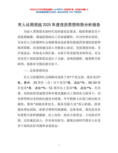 / 市人社局党组2025年度党员思想形势分析报告