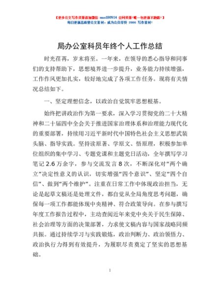 / 局办公室科员年终个人工作总结