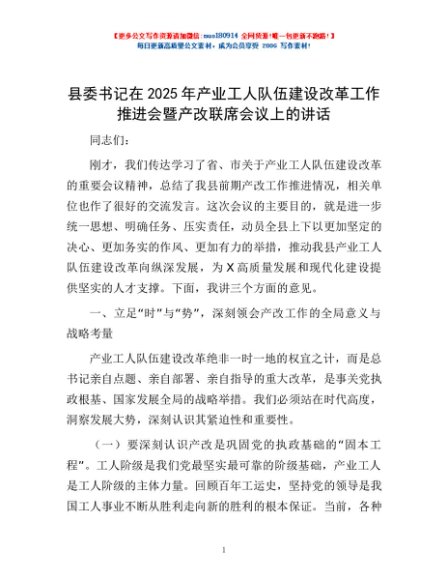 / 县委书记在2025年产业工人队伍建设改革工作推进会暨产改联席会议上的讲话