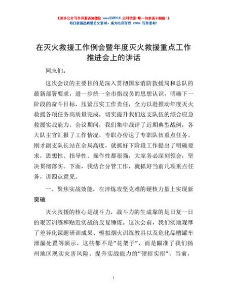/ 在灭火救援工作例会暨年度灭火救援重点工作推进会上的讲话