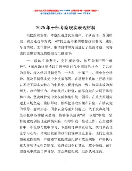 / 2025年干部考察现实表现材料
