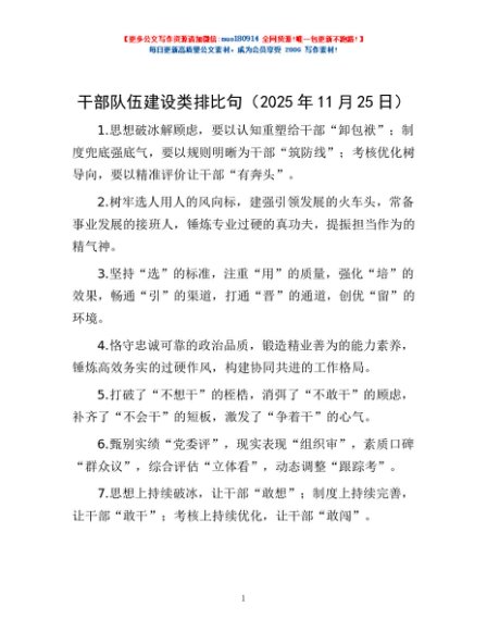 / 干部队伍建设类排比句(2025年11月25日)
