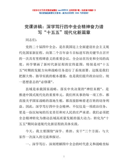 / 党课讲稿:深学笃行四中全会精神 奋力谱写“十五五”现代化新篇章