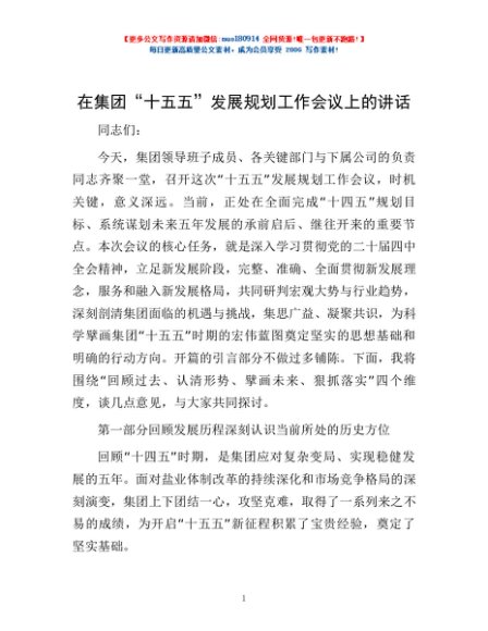 / 在集团“十五五”发展规划工作会议上的讲话