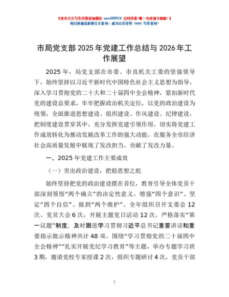 / 市局党支部2025年党建工作总结与2026年工作展望