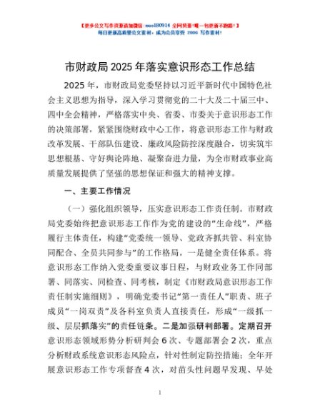 / 市财政局2025年落实意识形态工作总结