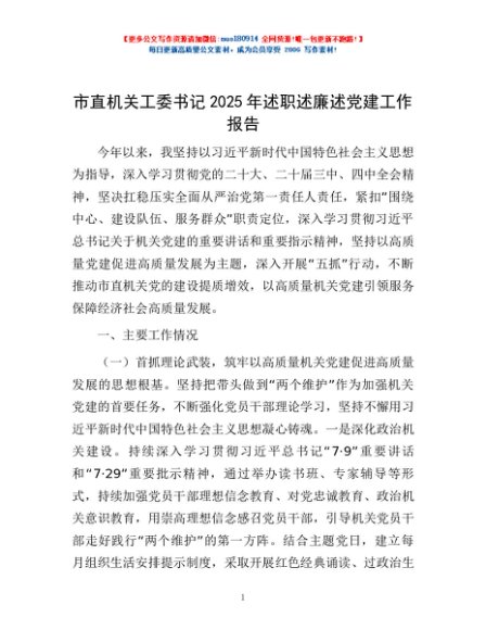 / 市直机关工委书记2025年述职述廉述党建工作报告