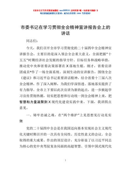 / 市委书记在学习贯彻全会精神宣讲报告会上的讲话