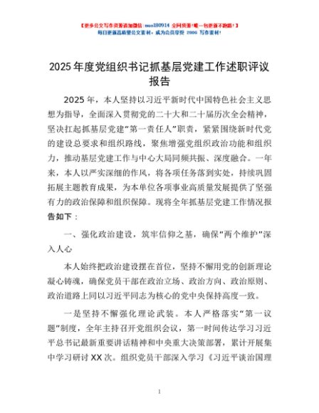 / 2025年度党组织书记抓基层党建工作述职评议报告
