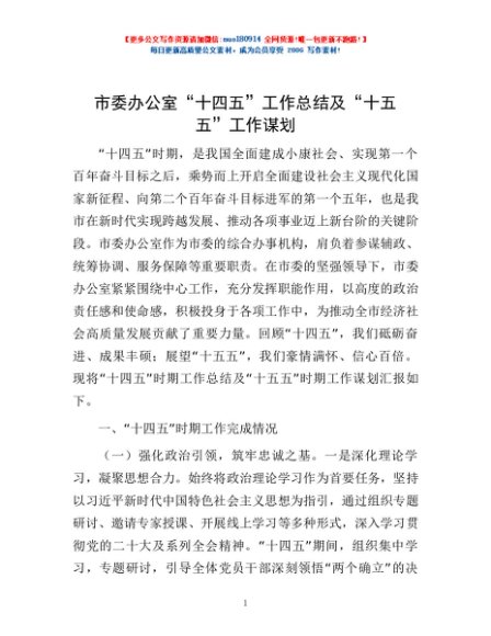 / 市委办公室“十四五”工作总结及“十五五”工作谋划