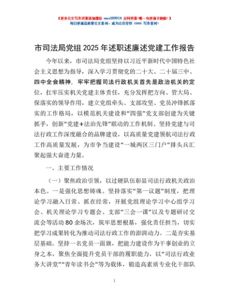 / 市司法局党组2025年述职述廉述党建工作报告