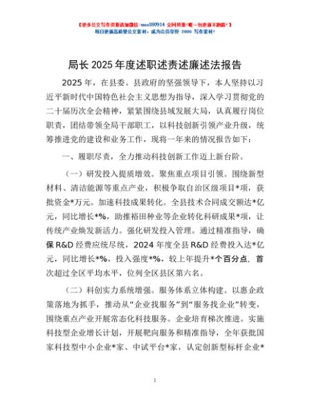 / 局长2025年度述职述责述廉述法报告