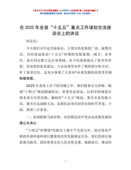 / 在2025年全县“十五五”重点工作谋划交流座谈会上的讲话