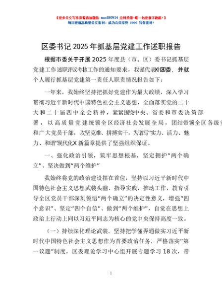/ 区委书记2025年抓基层党建工作述职报告