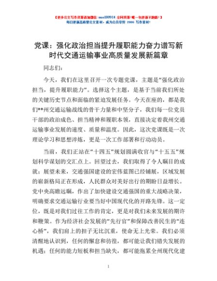 党课:强化政治担当 提升履职能力 奋力谱写新时代交通运输事业高质量发展新篇章