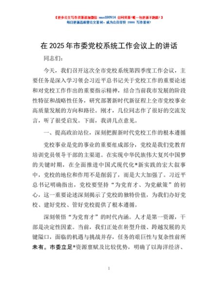 / 在2025年市委党校系统工作会议上的讲话