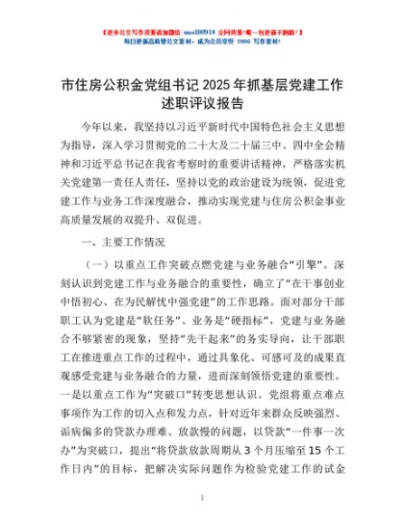 / 市住房公积金党组书记2025年抓基层党建工作述职评议报告
