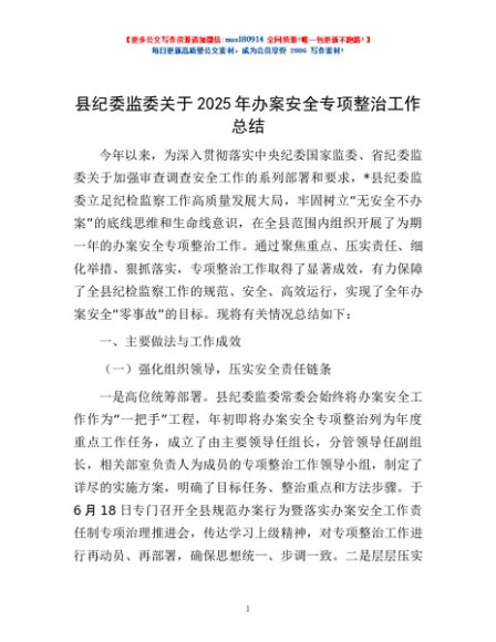 / 县纪委监委关于2025年办案安全专项整治工作总结