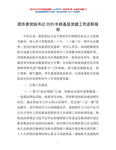 / 团市委党组书记2025年抓基层党建工作述职报告