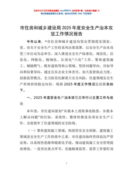 / 市住房和城乡建设局2025年度安全生产治本攻坚工作情况报告