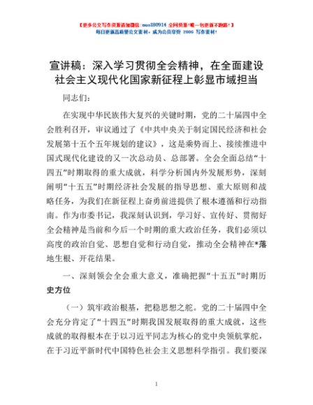 / 宣讲稿:深入学习贯彻全会精神,在全面建设社会主义现代化国家新征程上彰显市域担当
