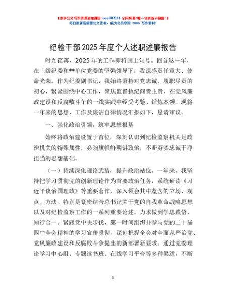 / 纪检干部2025年度个人述职述廉报告