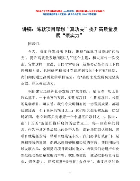/ 讲稿:练就项目谋划“真功夫”提升高质量发展“硬实力”