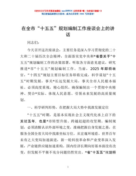 / 在全市“十五五”规划编制工作座谈会上的讲话