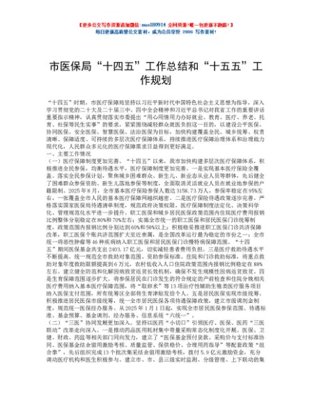 / 市医保局“十四五”工作总结和“十五五”工作规划
