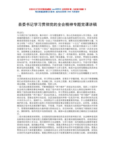 / 县委书记学习贯彻党的全会精神专题党课讲稿
