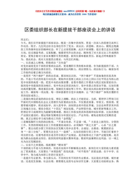 / 区委组织部长在新提拔干部座谈会上的讲话