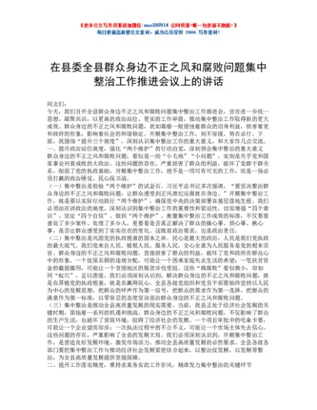 / 在县委全县群众身边不正之风和腐败问题集中整治工作推进会议上的讲话