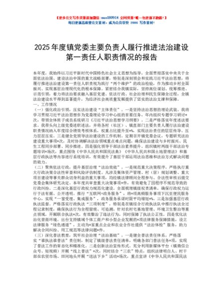 / 2025年度镇党委主要负责人履行推进法治建设第一责任人职责情况的报告
