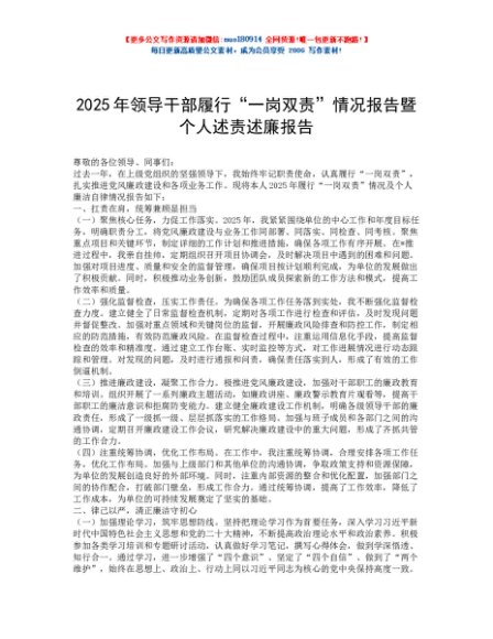 / 2025年领导干部履行“一岗双责”情况报告暨个人述责述廉报告