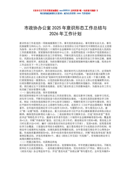 / 市政协办公室2025年意识形态工作总结与2026年工作计划