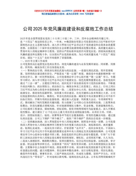 / 公司2025年党风廉政建设和反腐败工作总结