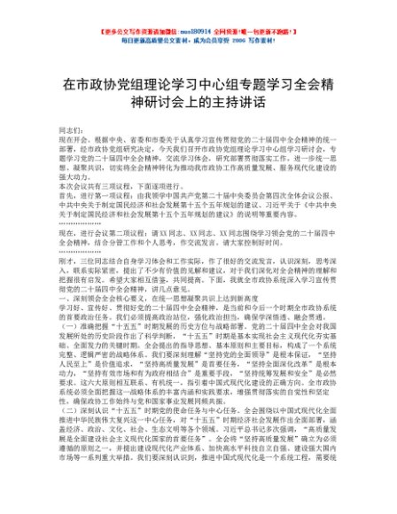 / 在市政协党组理论学习中心组专题学习全会精神研讨会上的主持讲话
