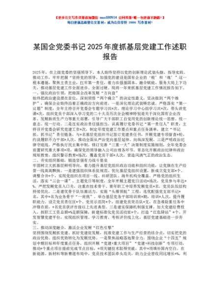 / 某国企党委书记2025年度抓基层党建工作述职报告