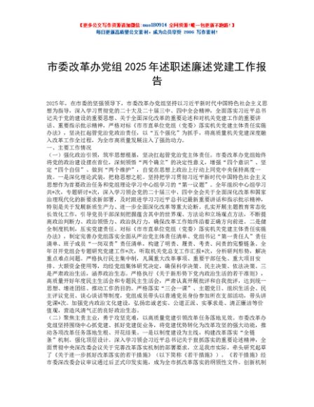 / 市委改革办党组2025年述职述廉述党建工作报告