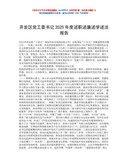 / 开发区党工委书记2025年度述职述廉述学述法报告