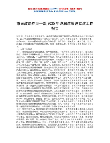 / 市民政局党员干部2025年述职述廉述党建工作报告