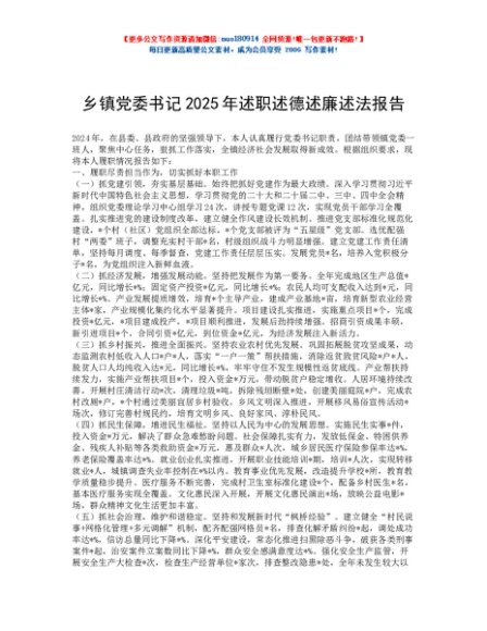 / 乡镇党委书记2025年述职述德述廉述法报告
