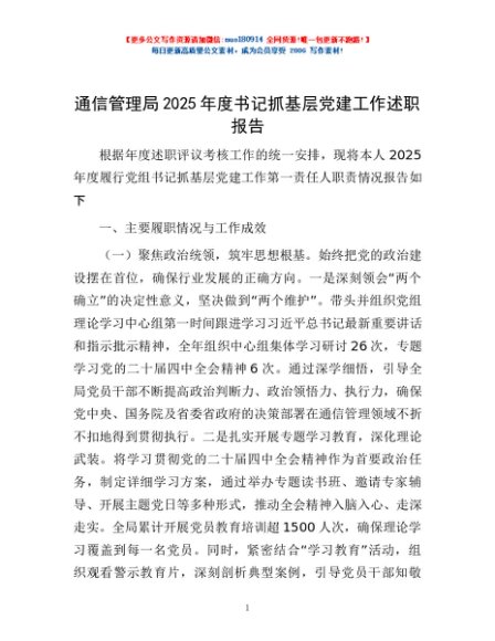 / 通信管理局2025年度书记抓基层党建工作述职报告