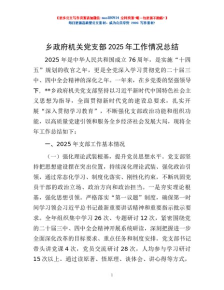 / 乡政府机关党支部2025年工作情况总结